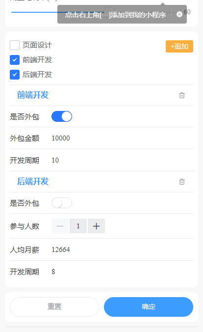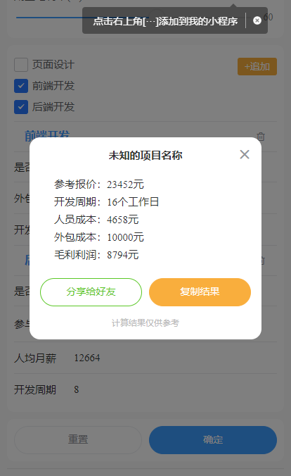 给大家推荐一款为软件开发公司而开发设计的软件开发报价助手小程序,可以为软件公司提供价格计算、软件定制开发报价服务,使软件开发公司精准控制成本。