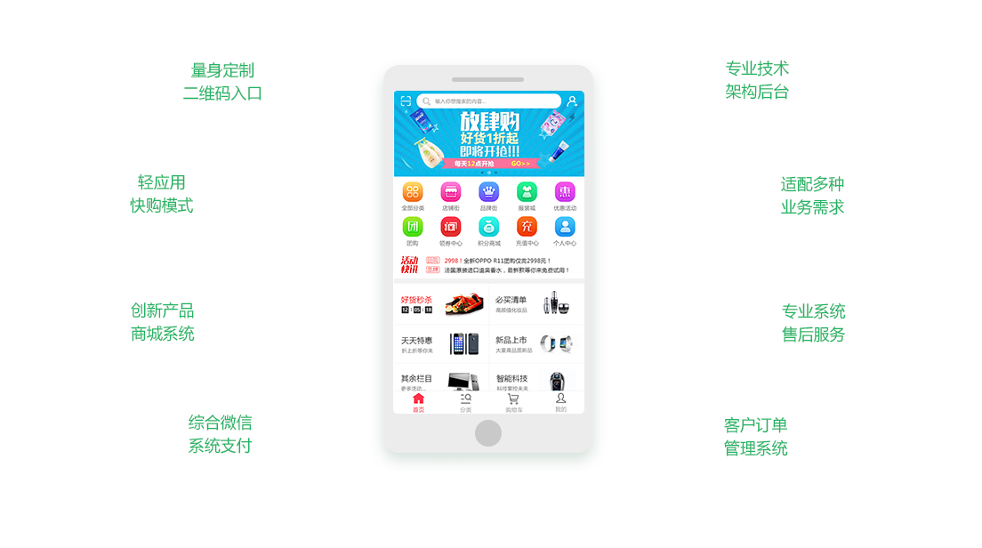 专业定制多套行业解决方案,助你轻松抢占微信新红利